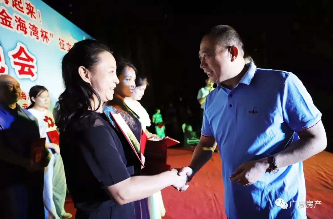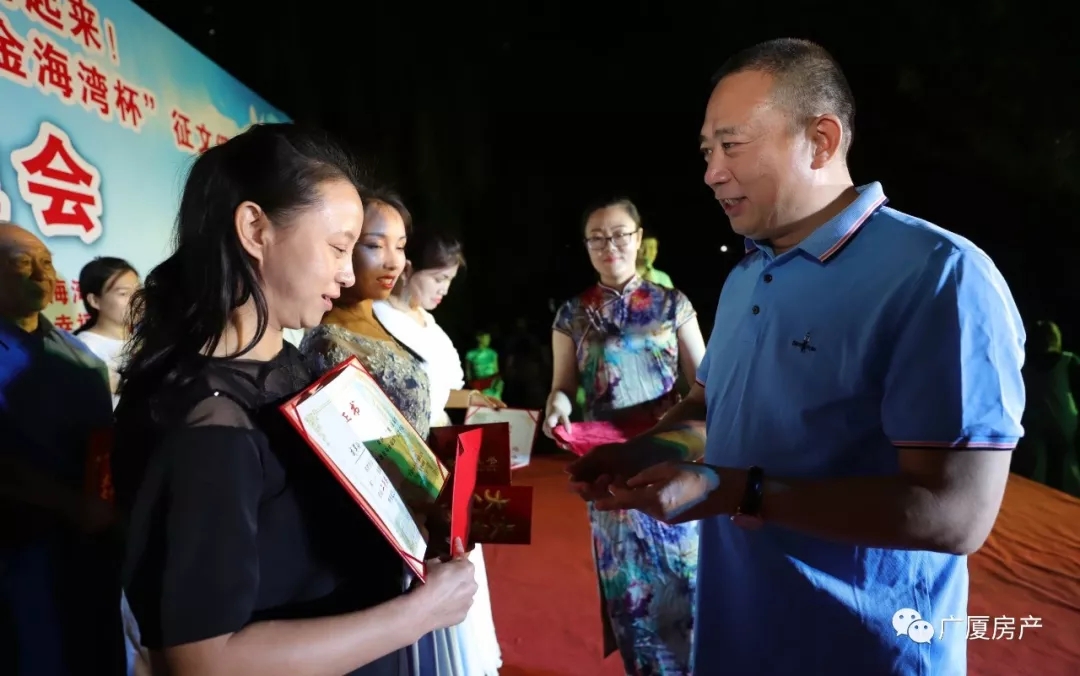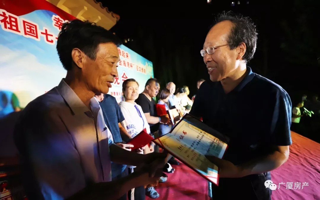 安邑街道黨工委委員、辦事處副主任郭保全先生、廣廈房產(chǎn)公司董事長李建民為獲得特等獎、一等獎、二等獎人員頒獎