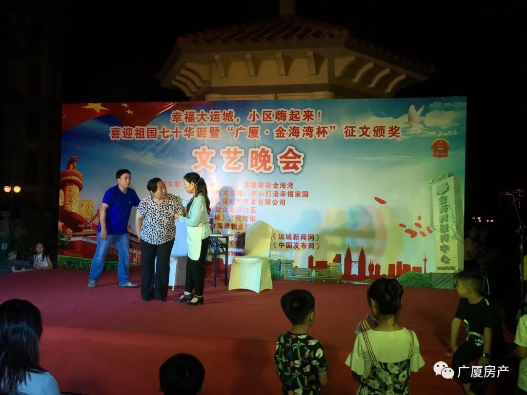 這次活動主要是由金海灣業(yè)主自發(fā)組成的文藝演出,向祖國七十華誕獻禮,他們的熱情參與,積極表演,充分體現(xiàn)了金海灣“三和文化”即“和諧社會、和睦小區(qū)、和美家庭“的社區(qū)氛圍!