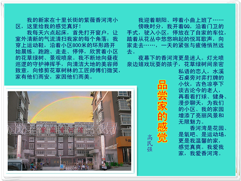 這里是情感的天空,是公司專門為員工、小區(qū)業(yè)主們及熟悉廣廈公司的朋友們開辟的一塊“文卉園”。大家可以在這里發(fā)表自己的習作、談談自己的經(jīng)歷、抒發(fā)自己的情感軼事。